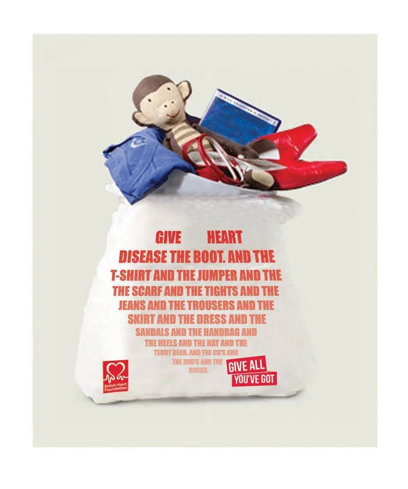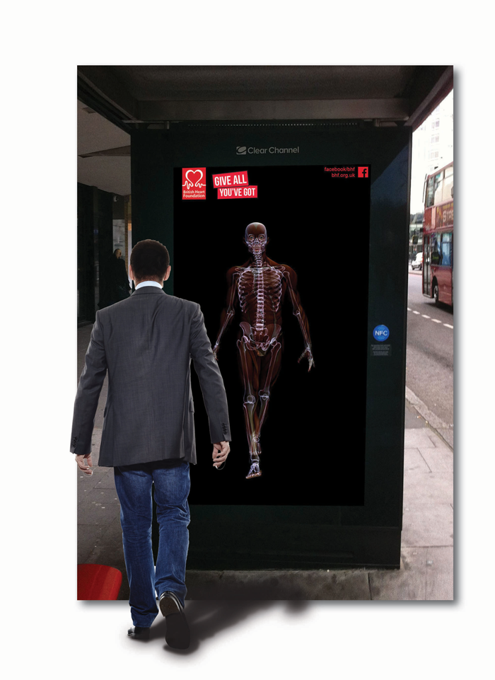 We thought there was a story there. We wanted to inspire the Great British Public to not just give half-heartedly, but to give wholeheartedly. We created a campaign idea ‘Give all you’ve got’ and invented a fictional character called Sam. Sam has an epiphany when he has a heart attack and decides to give away all his worldly possessions. Viewers can visit the microsite and choose what he gives away next, thus becoming actively enrolled in the concept of giving it their all. This social concept was supported with OOH and print and won the pitch.